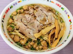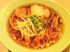 中華そばのスープはさっぱりとした口当たり。すっきりしているのに旨みもよく出ています。先にも少し触れましたが小魚は後から入るようになった物なので、元祖の朱華園では使用されていないとか。歴史を感じますね。